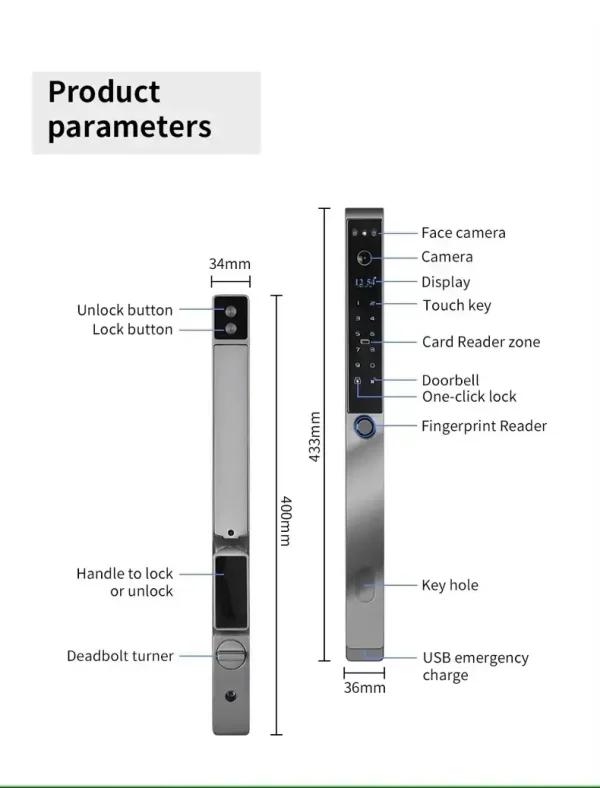 7.Unlocking mode:fingerprint/password/swipe card/TUYA APP/NFC /key